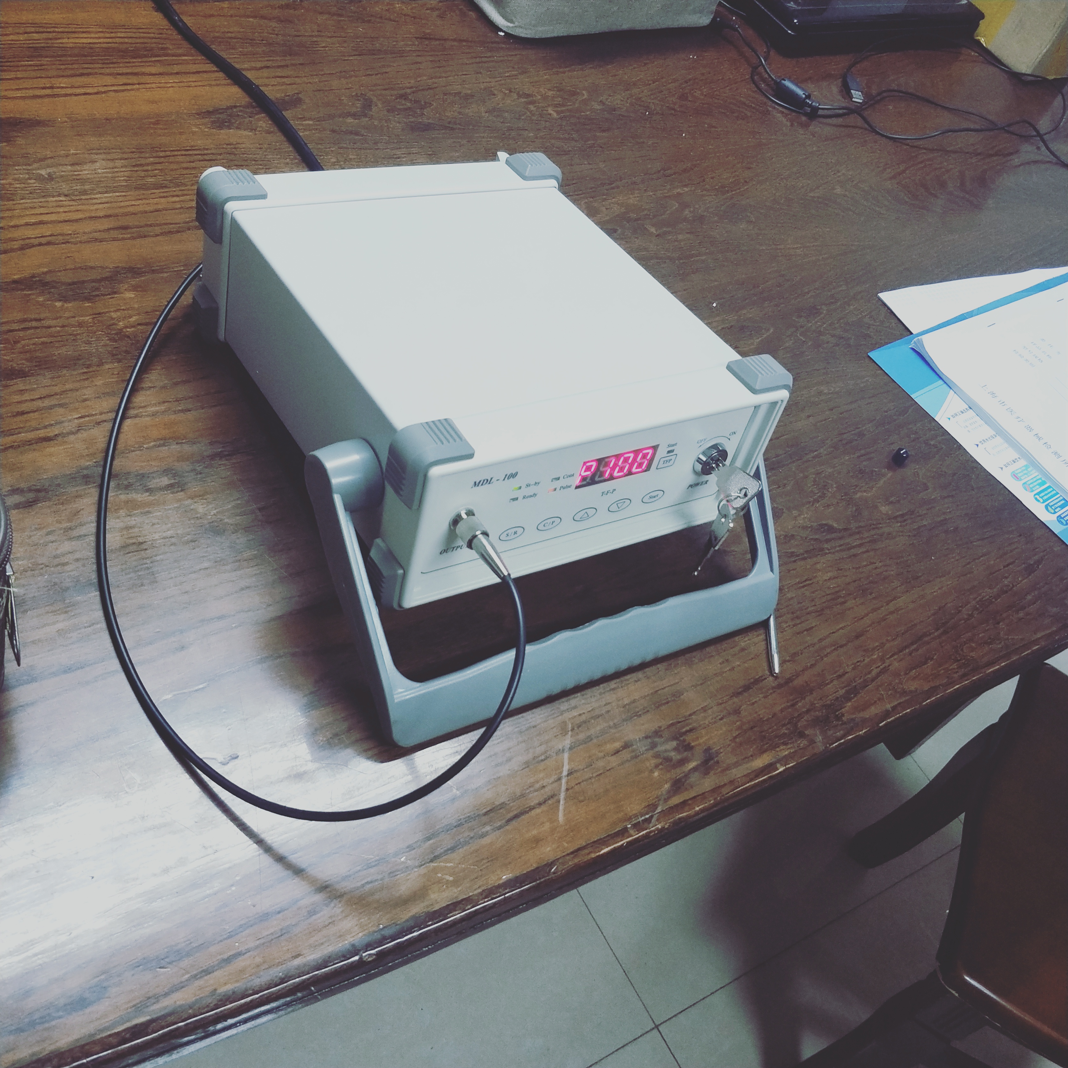 MDL100 medical diode laser instrument is a Diode Laser wavelength of 650nm . And its laser output by fiber .medical diode laser instrumentis also a kind of photochemical action in laser irradiating and beam needle.